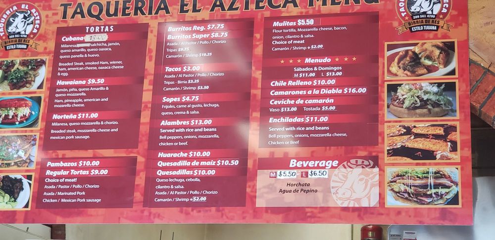 Taqueria El Azteca Menu